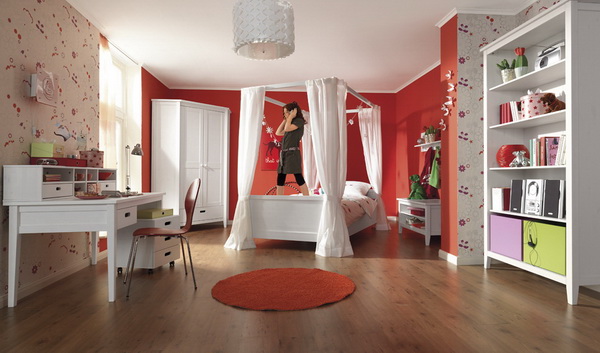 По мере взросления сдвигается круг интересов. Внимание от игрушек переключается на одежду, украшения, косметику, книги. Это раньше игрушки можно было сложить все разом в комод. Теперь же у каждой вещицы должно быть достойное, подчас, видное место. Появляется острая необходимость в разных полочках и стеллажах. Позаботьтесь, чтобы все это располагалось рационально, удобно и, главное, надежно. Помните, что многие, кажущиеся вам неважными, мелочи могут оказаться близкими сердцу девочки. При выборе мебели, учитывайте и вкус ребенка, ведь к этому моменту он может быть вполне сформированным и даже превосходить ваш.
