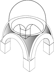 Или пандатив, сферический треугольник, нижний угол которого опирается на столб, а верхняя дуга вместе с дугами других парусов лежит в основании купола. Паруса стали применять в позднеримскую эпоху, их регулярное использование началось в архитектуре Византии с эпохи Юстиниана.